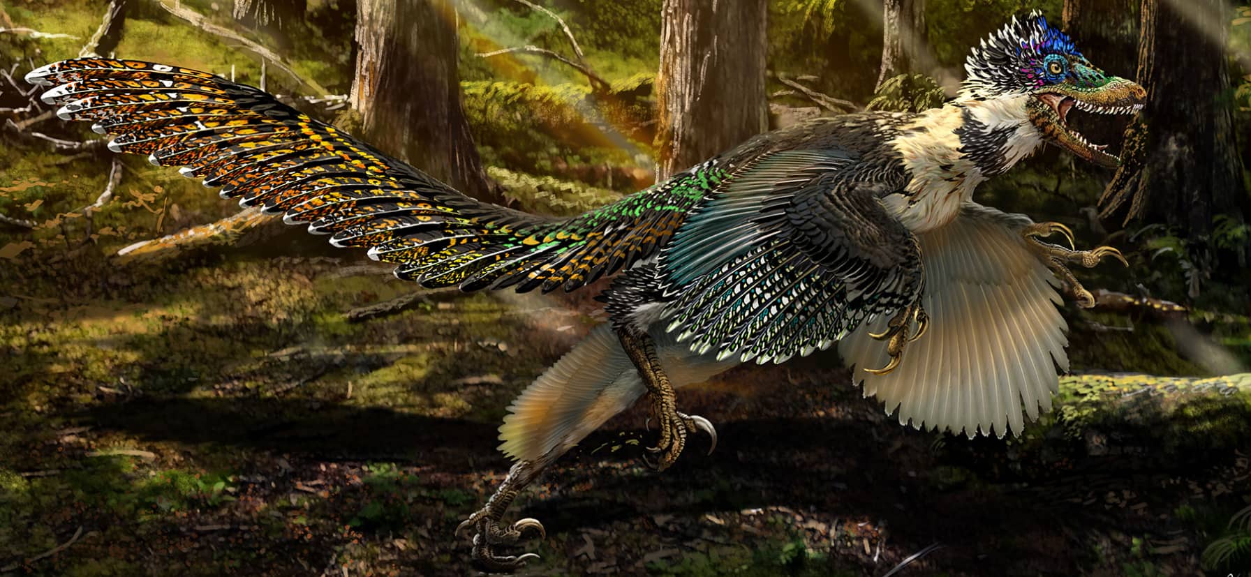 Scientists are confident that flight probably evolved multiple times within maniraptoran dinosaurs, occasionally enabled by structures other than feathered wings. Take, for example, the fascinating Scansoriopterygidae, a bizarre creature that evolved gliding flight with fleshy membranes between the forelimbs and hind limbs.