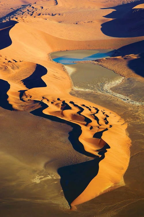 This place is a photographer’s dream as the lighting changes throughout the day and night, causing shadows and colors to constantly shift. The dunes in Sossusvlei are categorized as “star dunes,” because the wind blows from three directions, causing the sand to form star shapes. This also means that the dunes tend to remain anchored to one spot rather than drifting with the prevailing wind.